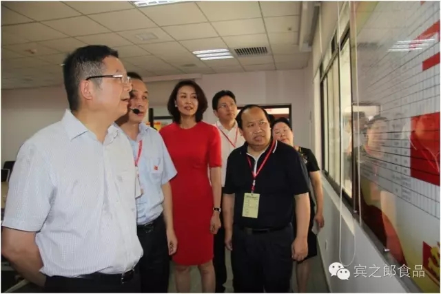 蔡建和一行先后參觀了賓之郎榮譽室、賓之郎自動化工藝制作車間、賓之郎食品安全風險防控室、賓之郎企業文化宣傳長廊和賓之郎黨群服務中心(黨群工作部、黨員會議室、黨群文娛室、黨群活動中心、心靈驛站等場所),詳細了解了賓之郎黨員組織管理情況、黨群活動開展情況及“兩學一做”專題培訓教育和企業經濟發展情況。